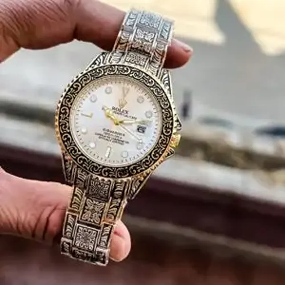 The Rolex Submariner Handcrafted (White Dial) is a luxury-inspired timepiece designed for men who love style, class, and bold personality in their accessories. This watch stands out because of its hand-engraved craftsmanship, giving it a premium designer look. The beautiful White Dial combined with the elegant Rosegold band makes it a perfect choice for modern men who want confidence and elegance in their everyday style.