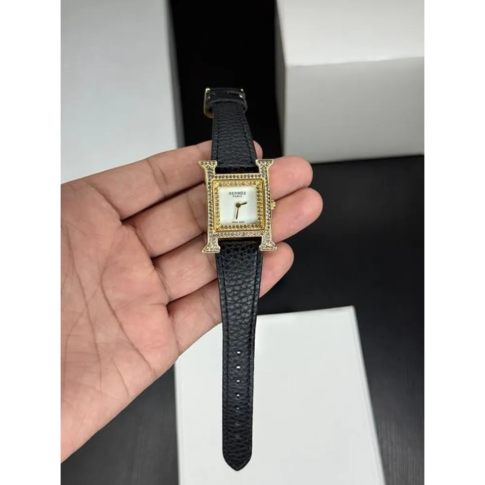 Stylish Hermes Leather Watch Black Logo For Women