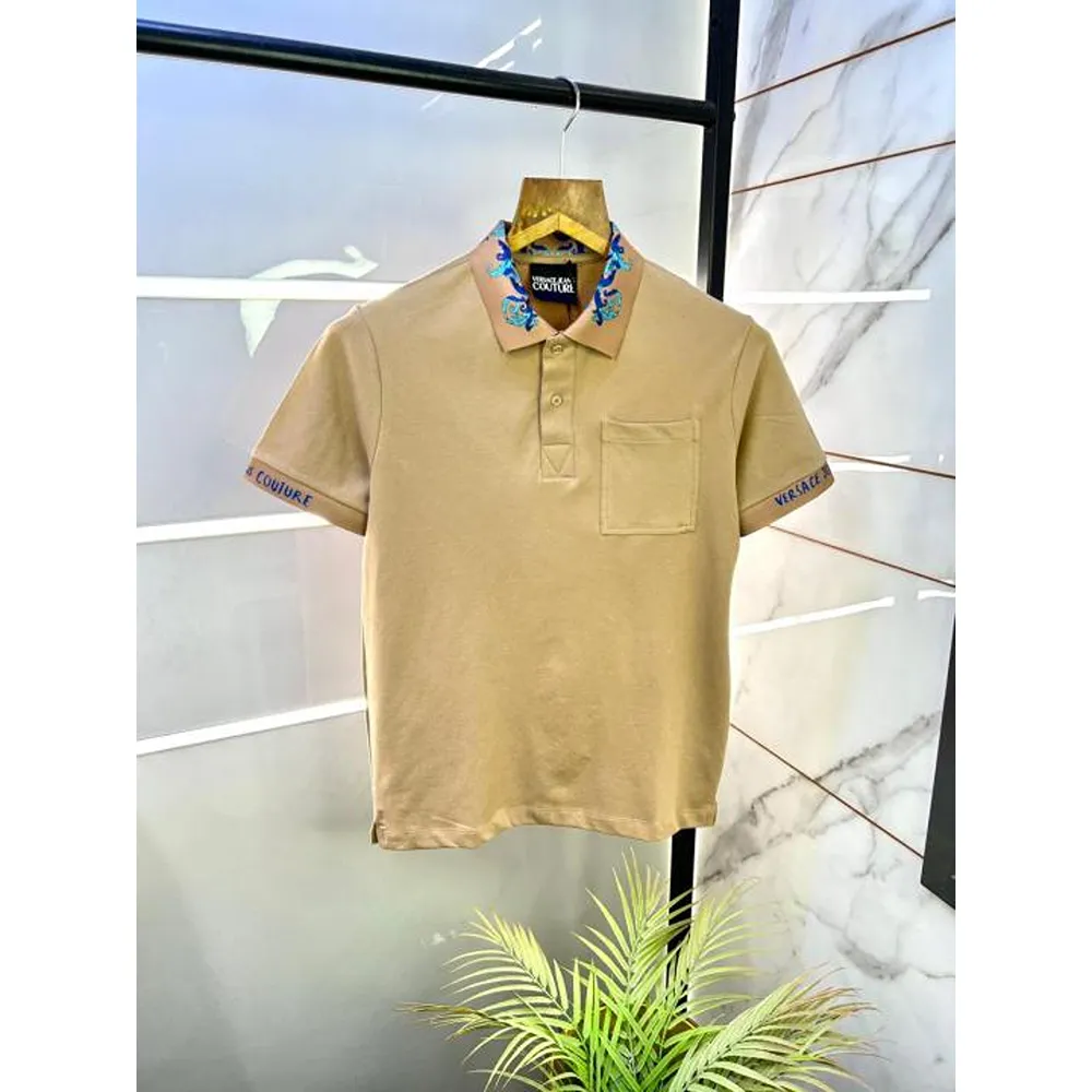 Trendy Versace T-shirt Beige Collar Neck For Men